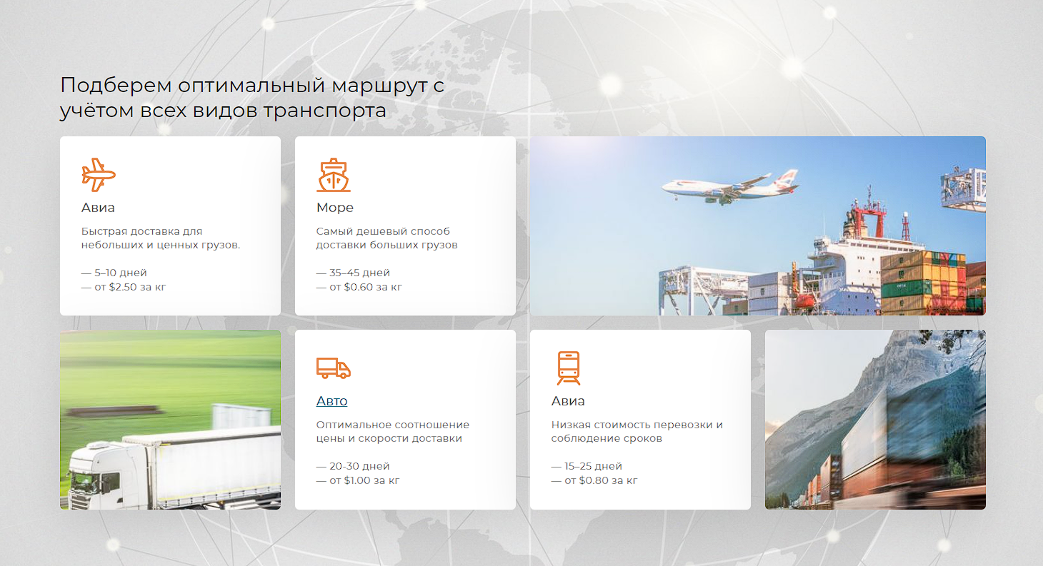 Организация занимается международной доставкой грузов из Азиатских и Европейских стран. Это значит что мне предстояло создать множество страниц по шаблону: