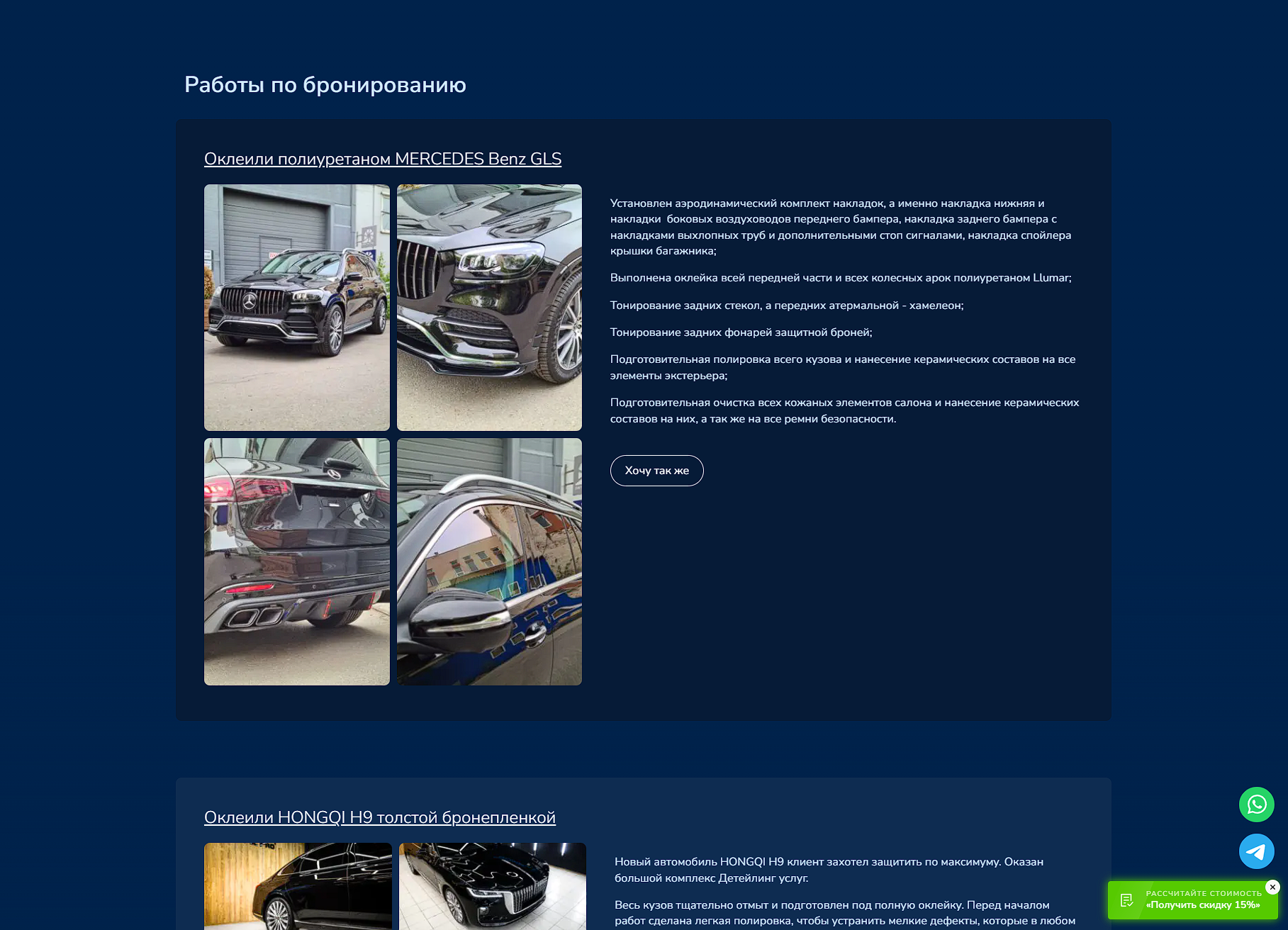 Ниже банальный пример где собраны знания программиста, дизайнера и сео-специалиста. Это просто публикация работы внутри тематической страницы, страницы об услуге бронирования кузова автомобиля.