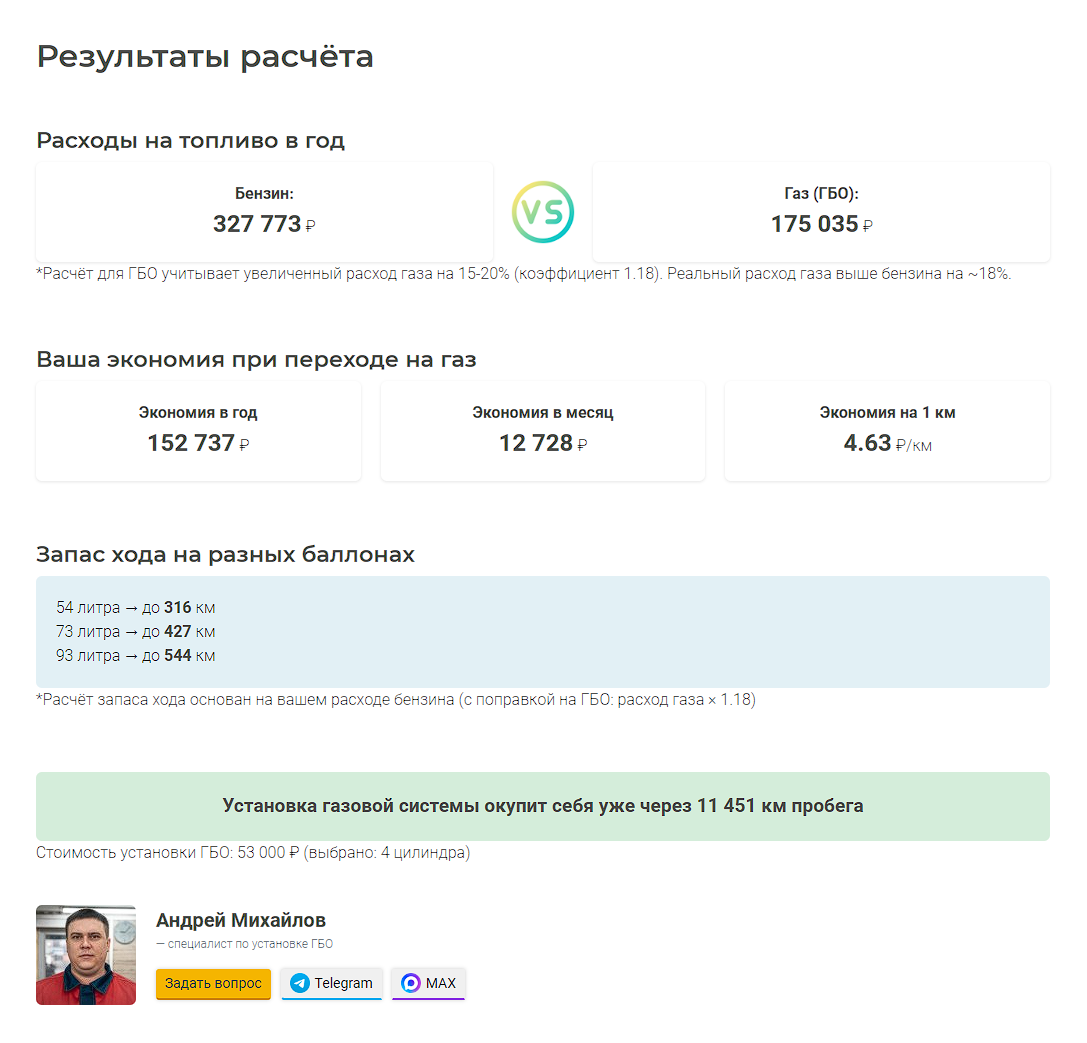 Отдельная страница с калькулятором сделана на чистом JS. Сегодня такой код я пишу с помощью ИИ. Раньше на такую задачу уходили сутки, теперь несколько часов.