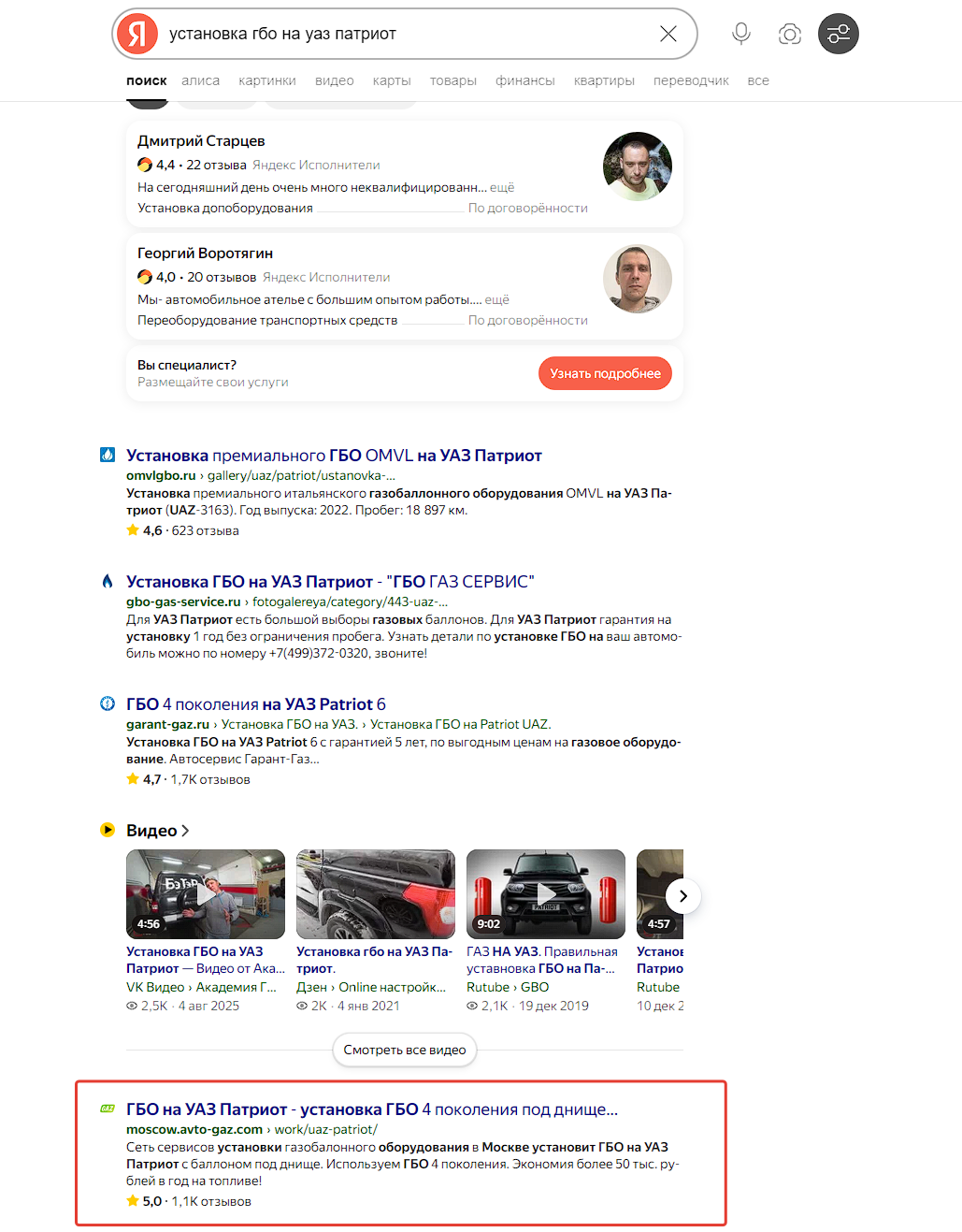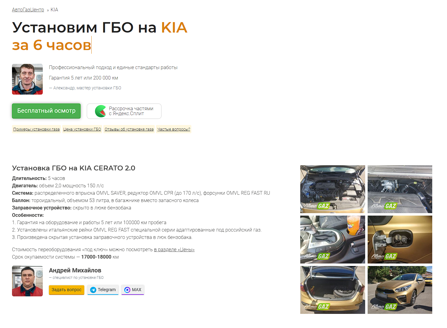 Но теперь на сайте появилась отдельная страница под более широкий запрос [марка авто] + «установка гбо». Интересно, что получится из этого!