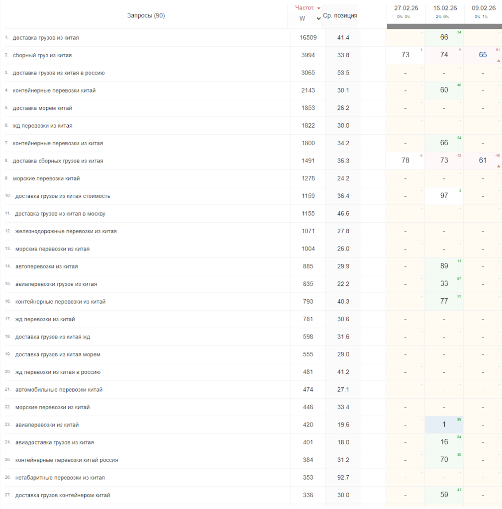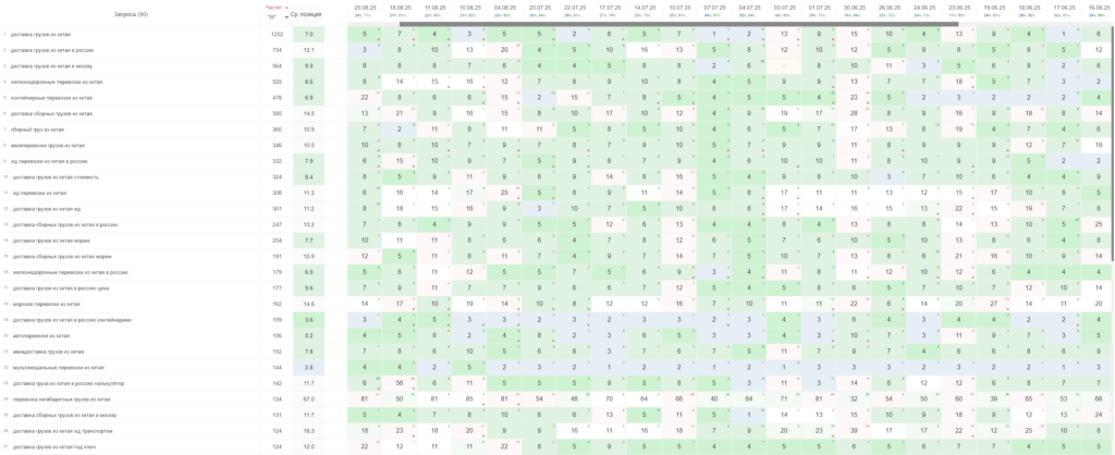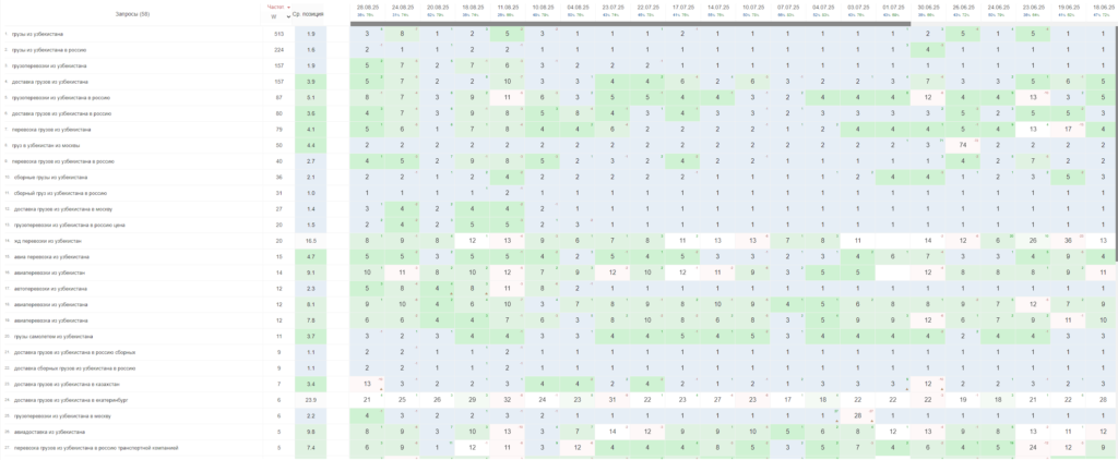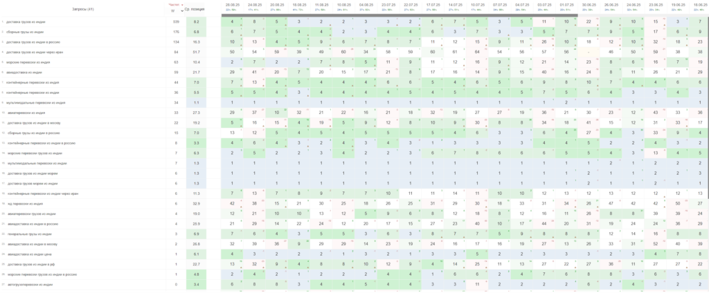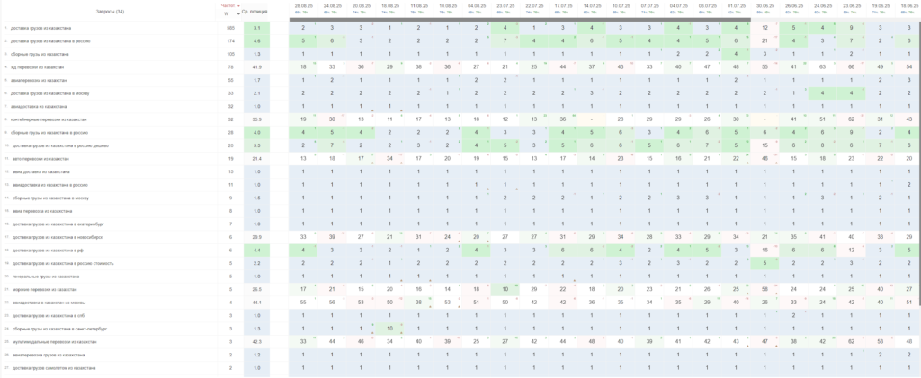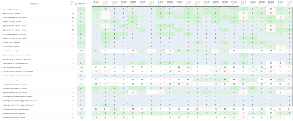 Сайт компании Трансазия — хороший пример последовательной работы. Не сразу все у меня получалось. Но количество попыток перешло в качественный трафик для сайта. Если вы ищите подрядчика для продвижения логистического сайта — вот он я, пишите.