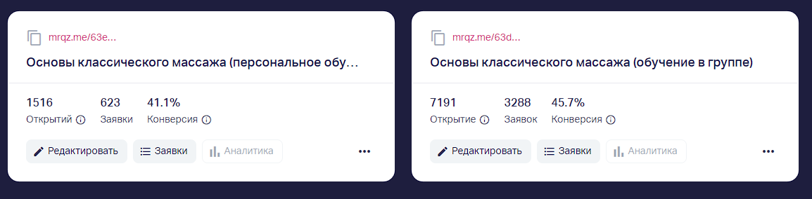 Результаты продвижения курсов массажа на июль 2024 года
