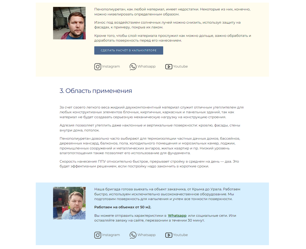 Пользователи больше времени проводят на страницах и поисковая система наградила сайт за это. Вот несколько скриншотов сайта с блоками с руководителем: