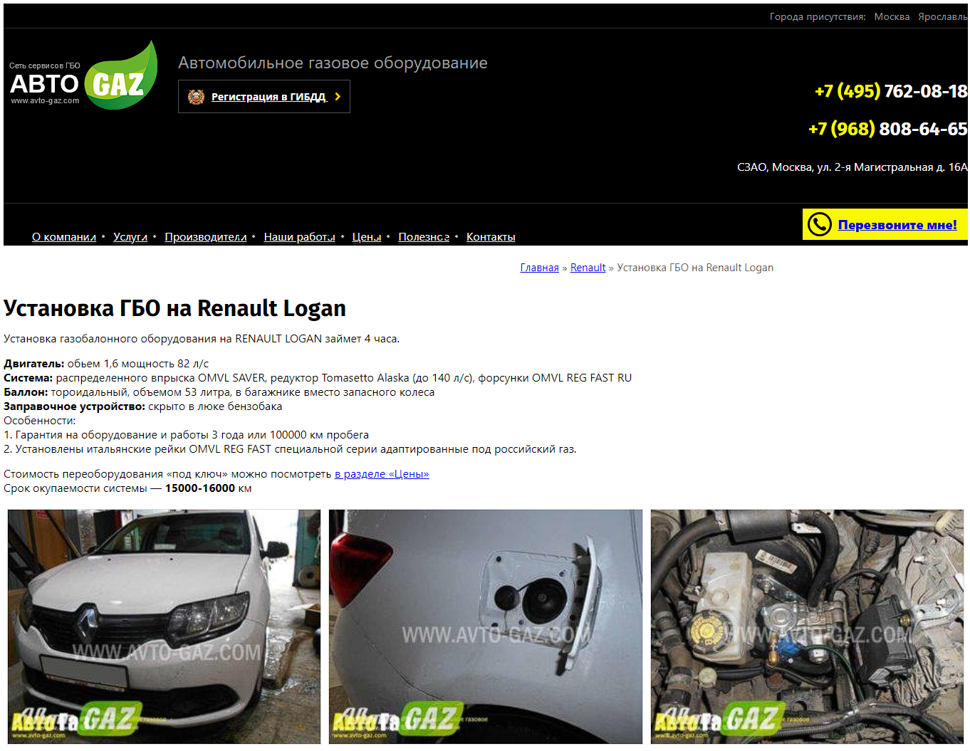 Первое взаимодействие с сайтом автосервиса по установке ГБО произошло в 2018 году. Сайт рос, но недостаточно активно. Вот как выглядел сайт раньше: