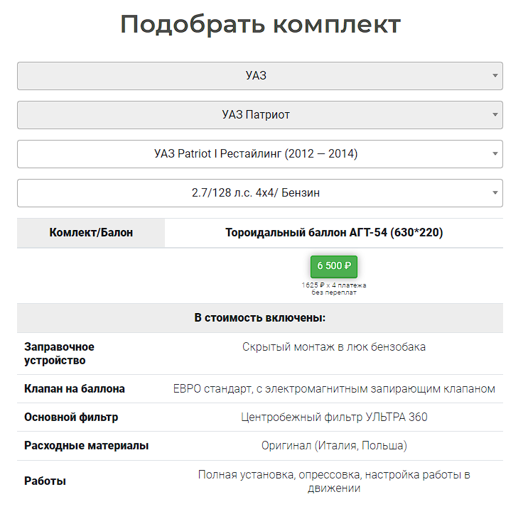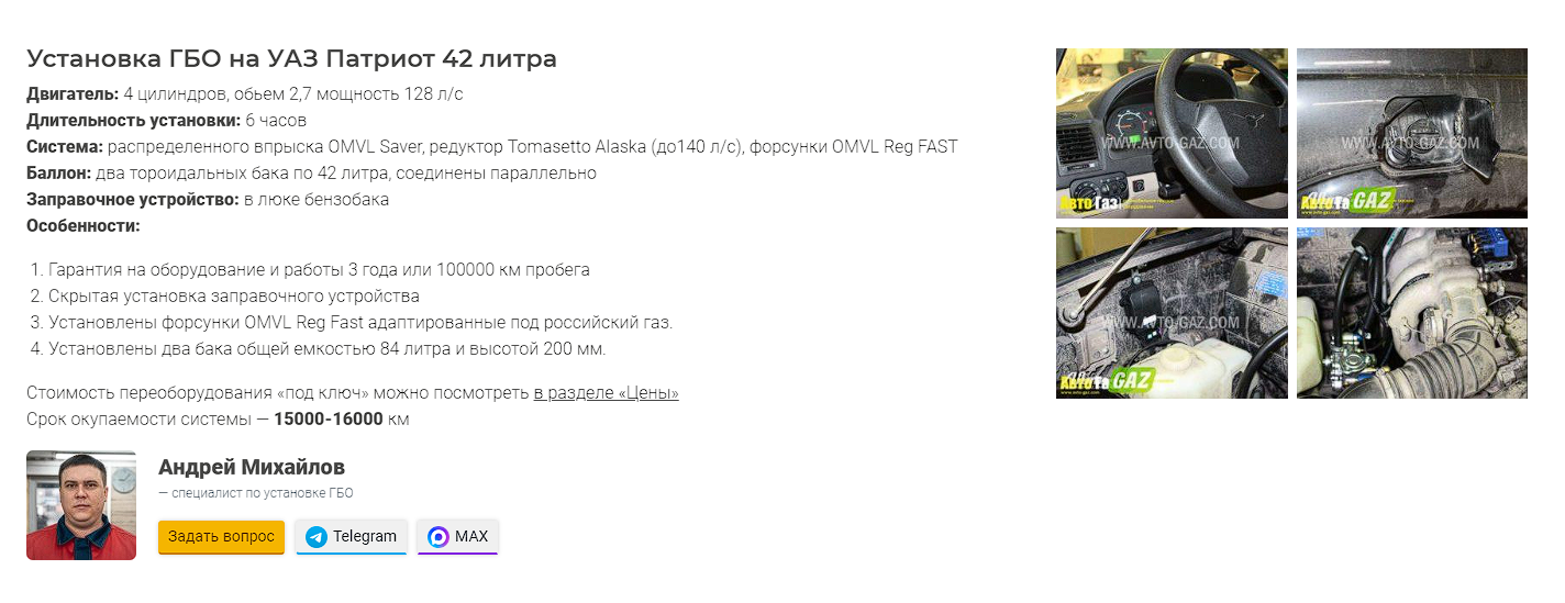 Это оказался самый частотный кластер запросов, Автомобиль + установка ГБО. Для каждого из них нужна была посадочная страница. Она должна быть понятной, отвечающей на все вопросы пользователя. Там должны быть таблицы с ценами, описание установки, фотографии после установки и другие коммерческие факторы.